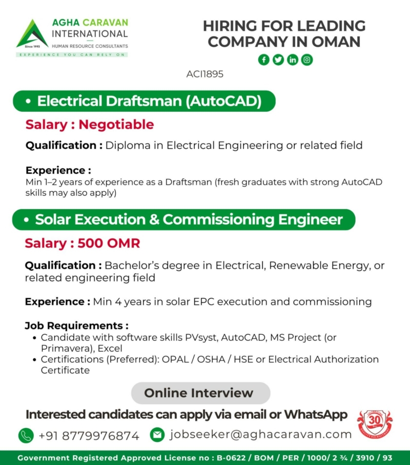 HIRING FOR A LEADING COMPANY IN OMAN 🇴🇲